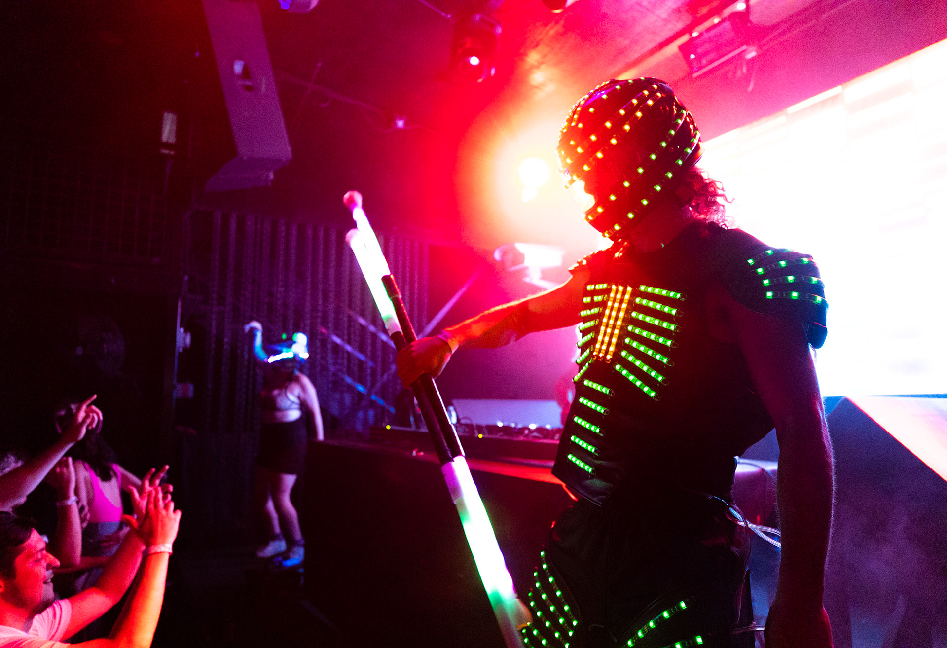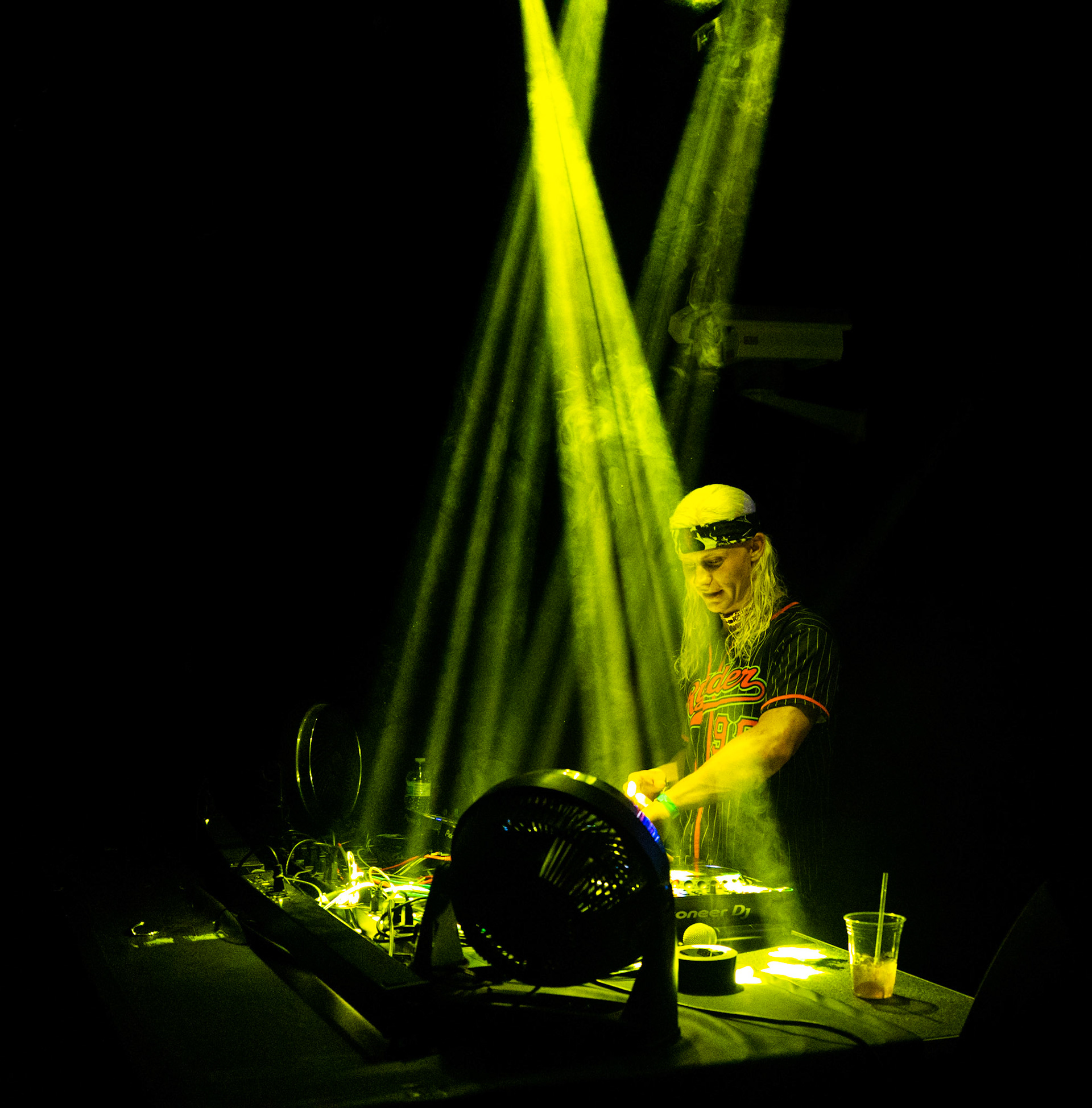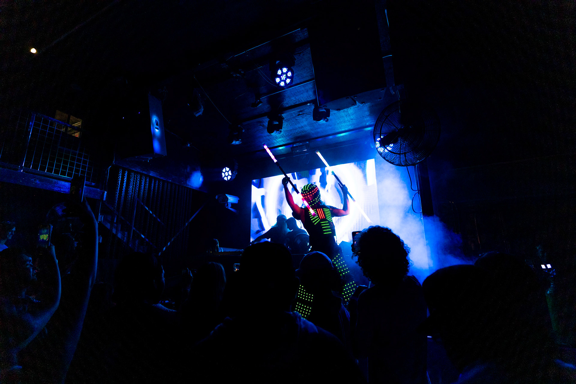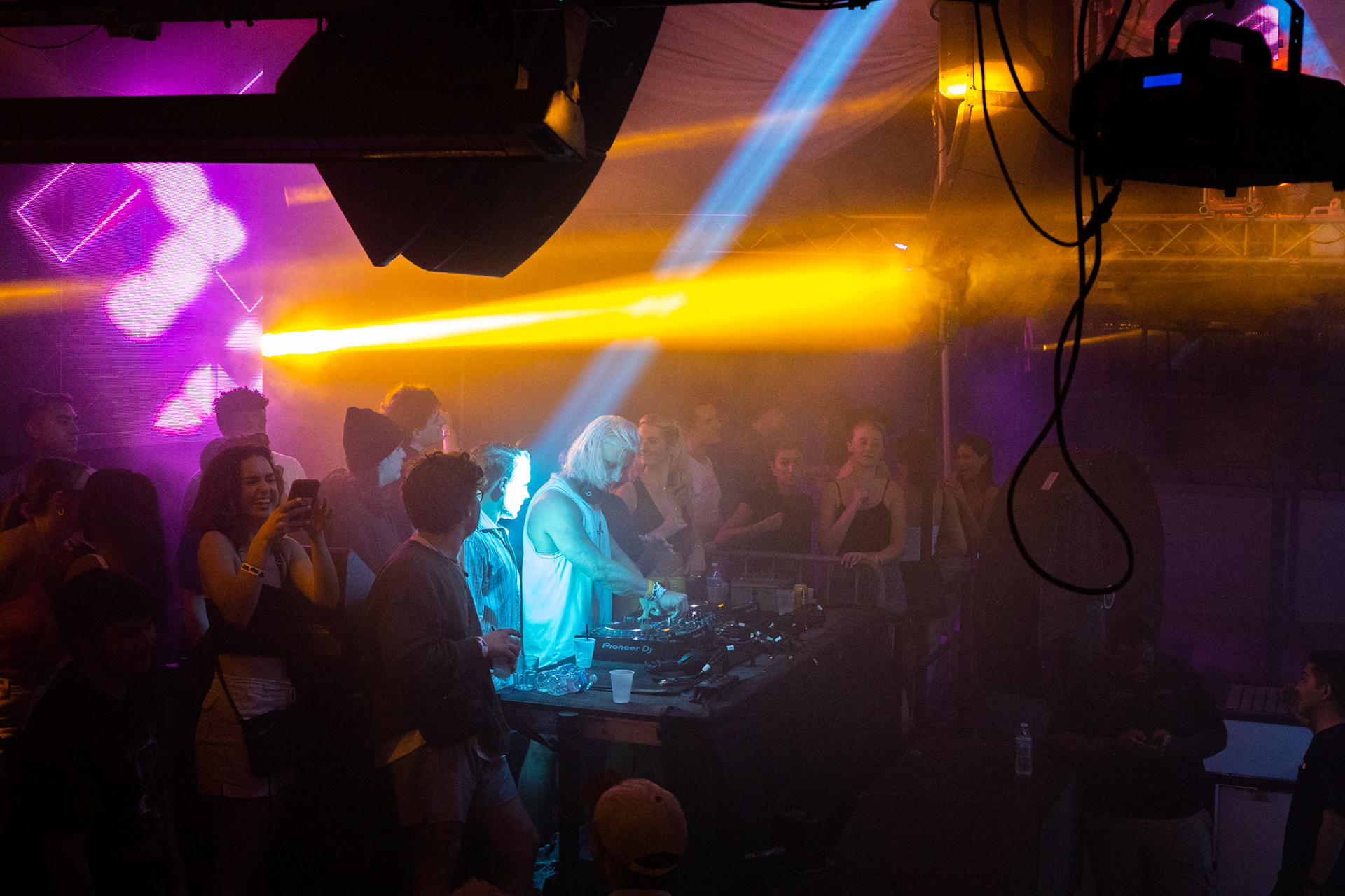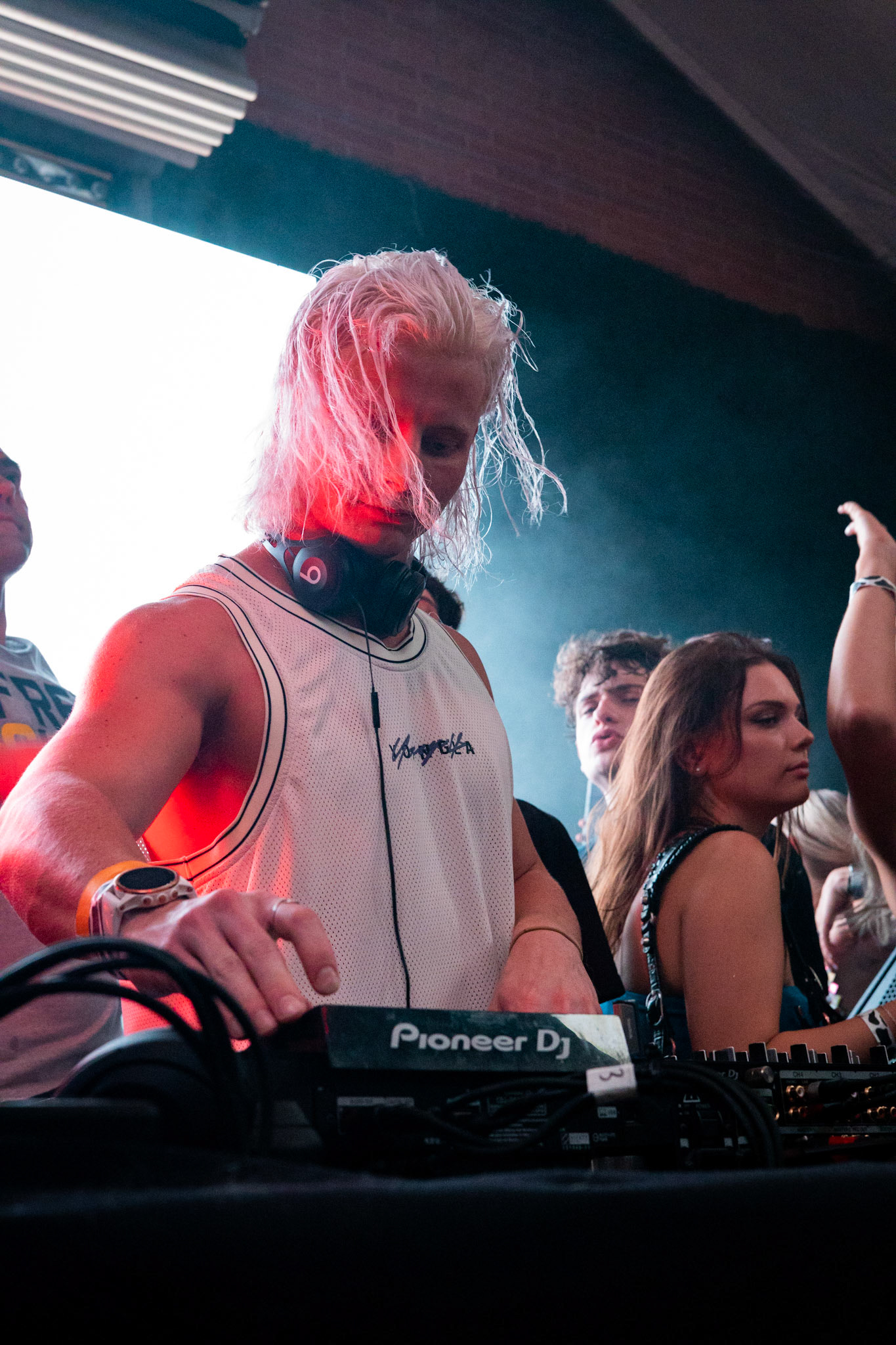 Nolan Simmons performs at The Venue in Austin, Texas on July 9th, 2022. Simmons, a college student, makes money DJing to pay for tuition.