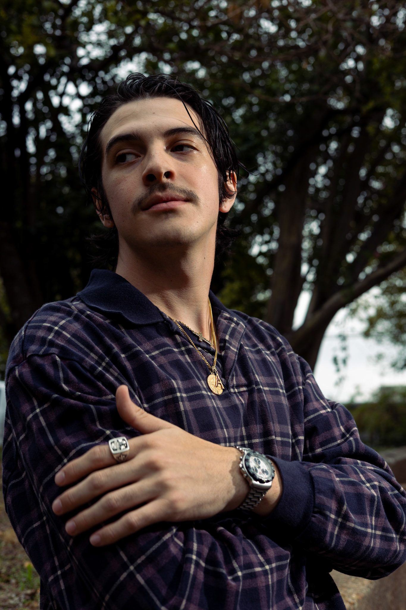 Walker Young perusing through his spice rack contemplating the flavor of the night. Austin, Tx, September 7th, 2023.